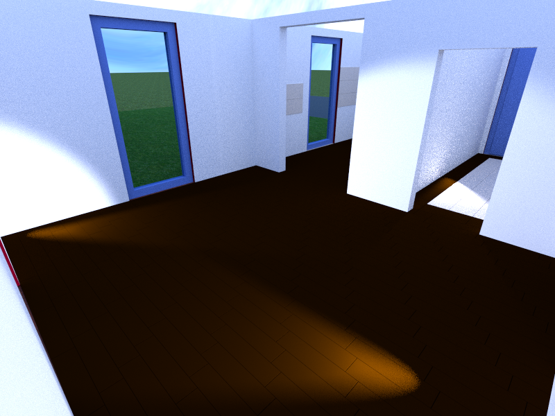 Die Innenwand Kind 2/Wohnen soll später eventuell entfernt werden. Daher soll (u.a. durch Bevorratung mit Fliesen) eine spätere Verbindung zwischen den Fliesen in „Kind 2“ und „Wohnen“ vorbereitet werden.